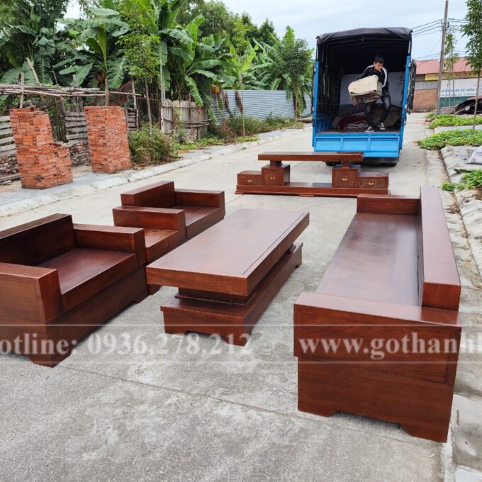 Bộ Sofa H Đóng Hộp Gỗ Hương Đá Màu Óc Cho Giao Tại Bắc Ninh