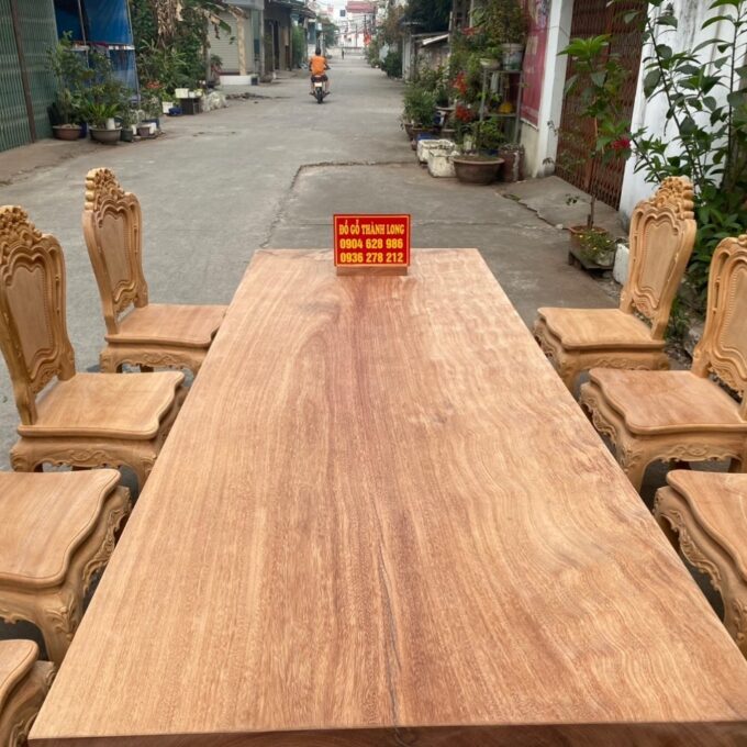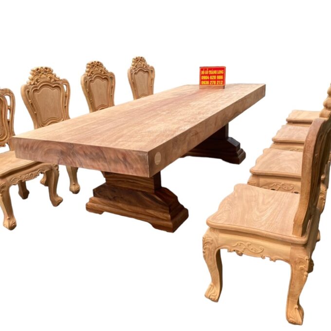 Bộ bàn ăn nguyên khối gỗ gõ đỏ kết hợp với ghế louis hoàng gia tạo lên một bộ sản phẩm mang phong cách hoàng gia tân cổ phù hợp với rất nhiều với kiểu nhà như Biệt thự, nhà vườn,nhà hiện đại… Bộ bàn ăn nguyên khối này được làm từ chất gỗ gõ đỏ thuộc nhóm gỗ loại 1 có tính ổn định gỗ cao, chất gỗ nặng, tôm gỗ mịn là sự lựa chọn hàng đầu cho Quý khách hàng thích chơi hàng nguyên khối nguyên bản tự nhiên 100%. Với sự kết hợp ghế ăn louis hoàng gia mặt tràn đục 2 mặt trước sau sẽ làm phòng ăn nhà bạn trở lên hiện đại sang trọng gần gũi với thiên nhiên.