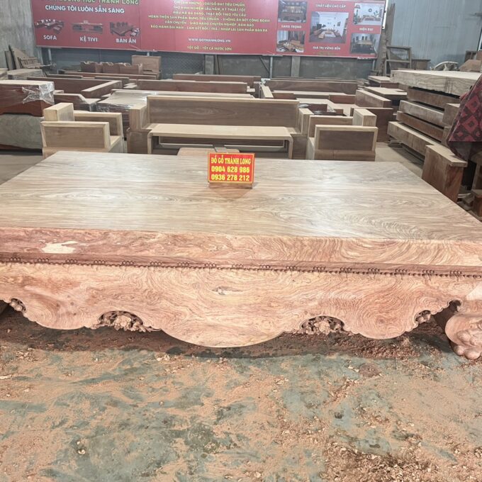 Bộ sập chân quỳ gỗ hương đá nguyên khối dưới đây được làm 100% từ gỗ hương đá Nam Phi đã được Xưởng Gỗ Thành Long chọn lựa gỗ rất kỹ để ra được bộ sản phẩm có những thước vân gỗ hoàn mỹ đến như vậy. Bộ sản phẩm đã được Vị khách hàng tại Hà Nội về nghiệm thu phần thô và đã rất ưng ý hài lòng về sản phẩm Sập chân quỳ gỗ hương đá nguyên khối này của đơn vị Xưởng Đồ Gỗ Thành Long