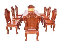 Về chất liệu, bộ bàn ăn gỗ giá rẻ thường được làm từ gỗ thông, gỗ xoan đào, gỗ sồi,… Đây là những loại gỗ có giá thành tương đối rẻ, nhưng vẫn đảm bảo độ bền và tính thẩm mỹ.