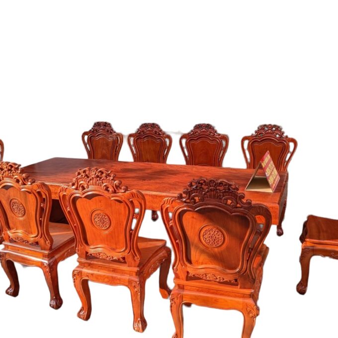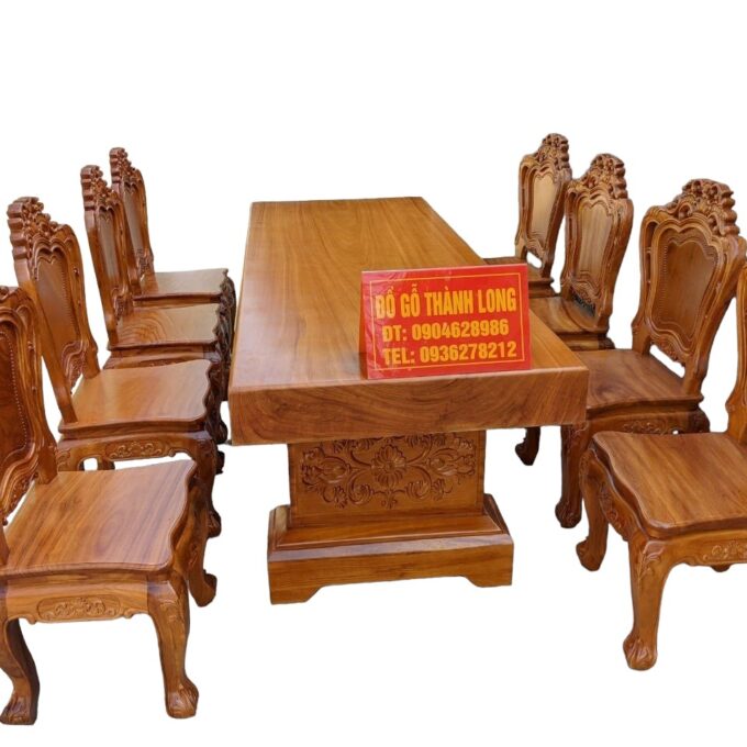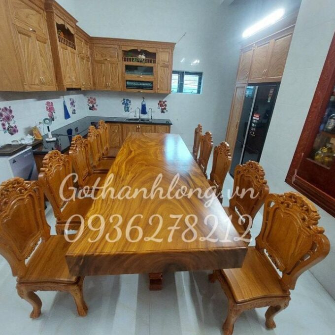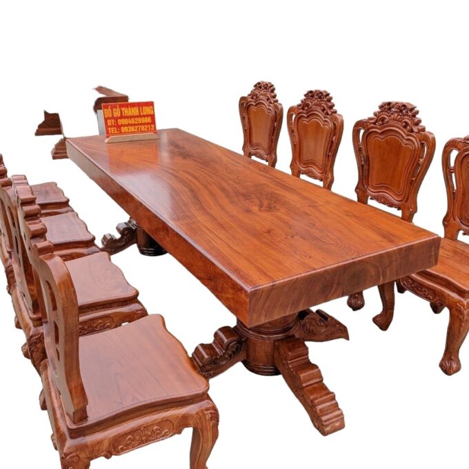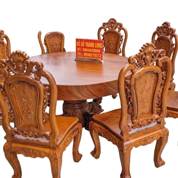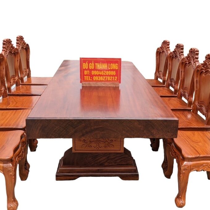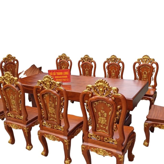 Bàn ăn nguyên khối gỗ hương đá kết hợp với mẫu ghế louis hoàng gia là mẫu được nhiều khách hàng yêu thích và lựa chọn nhất Thành Long. Với phong cách tân cổ hoàng gia rất thích hợp với những căn biệt thự xa hoa và cũng rất phù hợp với những căn nhà hiện đại,tạo lên sự sang trọng và ấm cúng cho gia đình bạn.