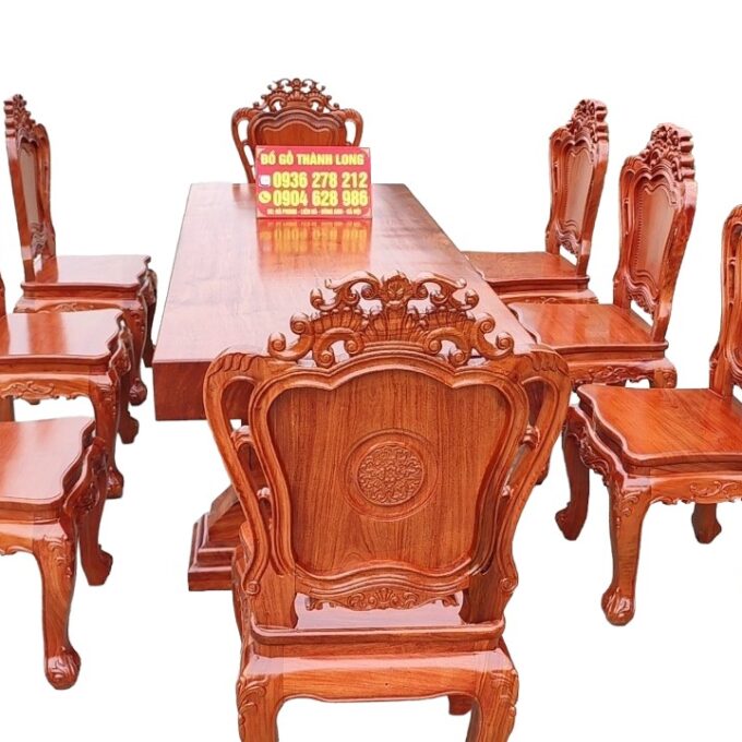 Bộ bàn ăn nguyên khối gỗ hương đá này là đơn đặt hàng của Chú Minh tại Hải Phòng đặt theo yêu cầu. Chú Minh sinh sống ở nước ngoài có theo dõi kênh Gỗ Thành Long đã tin tưởng đặt bộ bàn ăn nguyên khối cho căn nhà ở Việt Nam của Mình. Cảm ơn chú đã đặt hàng và hài lòng về sản phẩm Bộ bàn ăn nguyên khối gỗ hương đá và 8 ghế louis hoàng gia như trên hình.