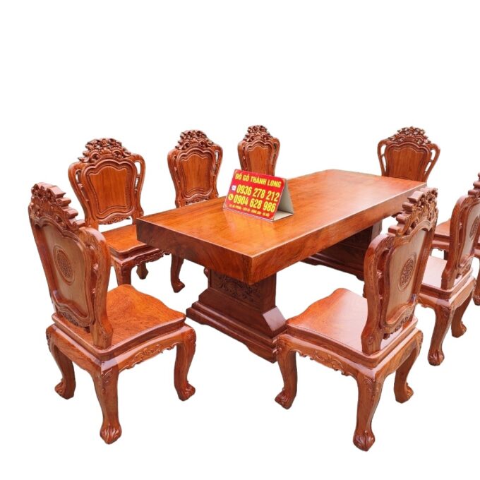 Bộ Bàn Ăn Nguyên Khối Gỗ Hương Đá 8 Ghế Louis Hoàng Gia