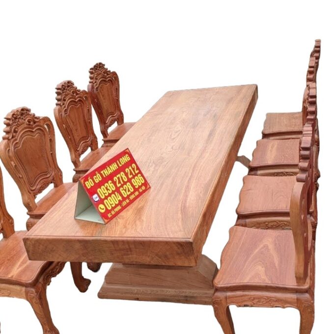 Bộ bàn ăn nguyên khối gỗ hương đá là mẫu bàn ăn thể hiện phong cách tân cổ hoàng gia rất phù hợp với Quý khách hàng yêu thích các đường nét họa tiết hoa văn. Bộ bàn ăn nguyên khối gỗ hương đá nên là sự lựa chọn ưu tiên dùng cho không gian phòng ăn trở lên sang trọng và ấm cúng.