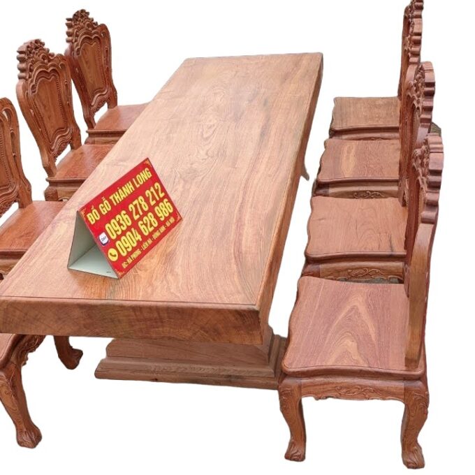 Bộ Bàn Ăn Nguyên Khối Gỗ Hương Đá Ghế Louis Hoàng Gia