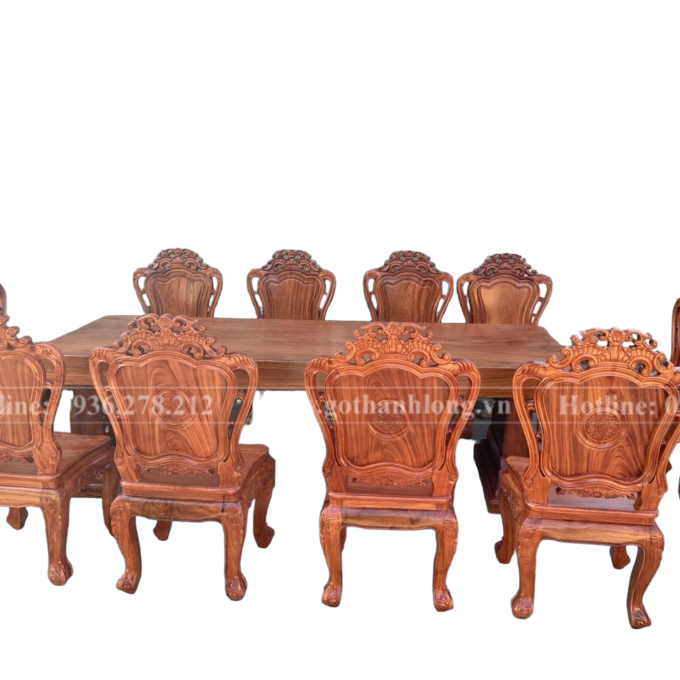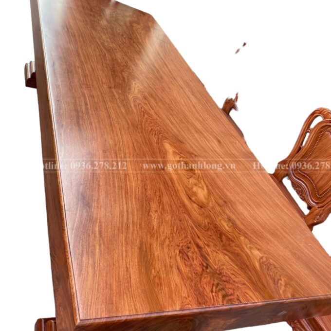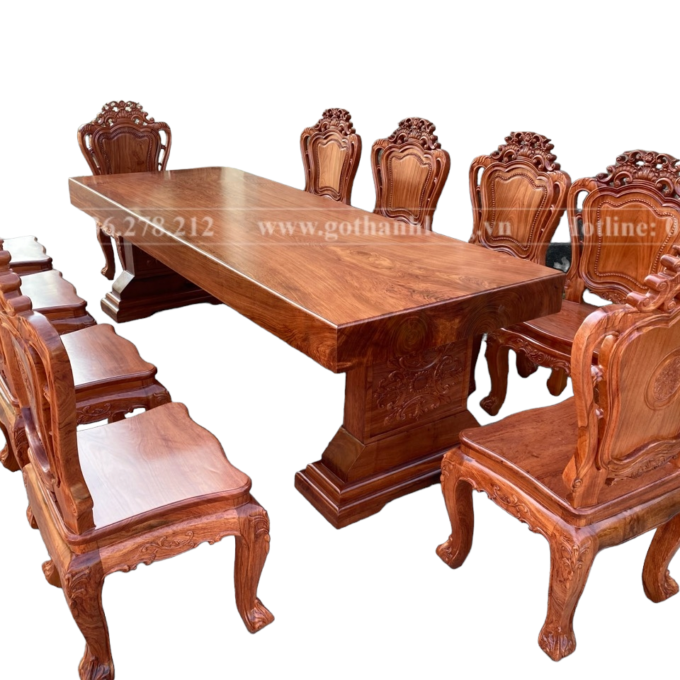 Bộ bàn ăn nguyên khối gỗ hương đá giao tại Bắc Giang là bộ sản phẩm được anh Tiến tại Bắc Giang về trực tiếp xưởng gỗ Thành Long đặt hàng. Anh đã rất hài lòng về tấm bàn ăn mình đã chọn được vì những đường vân siêu vip và thớ thịt gỗ mịn nhẵn bóng rất đẹp kết hợp với ghế ăn louis hoàng gia đục 2 mặt tạo thành Bộ bàn ăn nguyên khối gỗ hương đá Ghế louis hoàng gia.