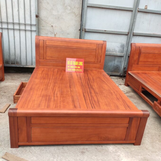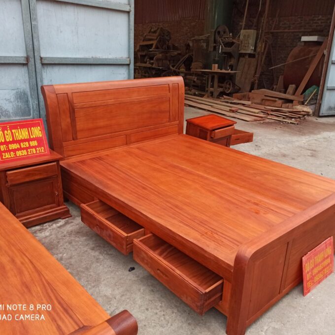 Quy cách: Giường ngủ gỗ gõ đỏ kiểu dáng đơn giản hiện đại có ngăn kéo