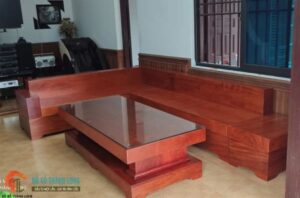 Tên sản phẩm: Bộ sofa nguyên khối góc L gỗ hương đá