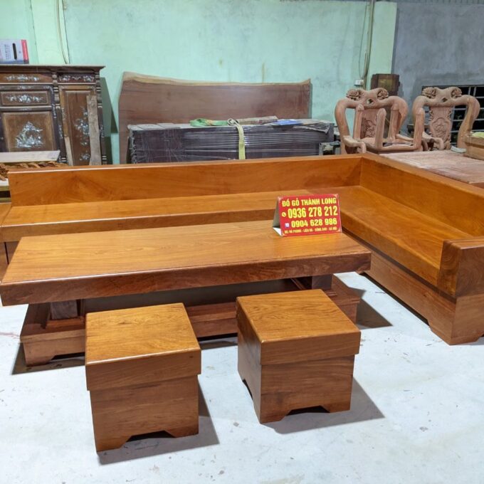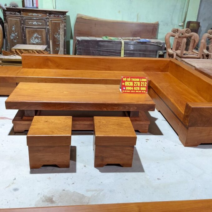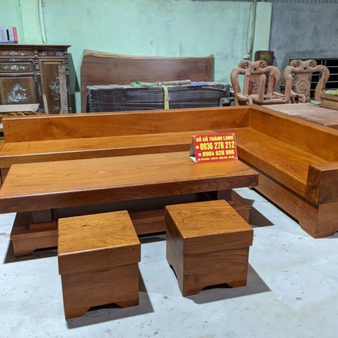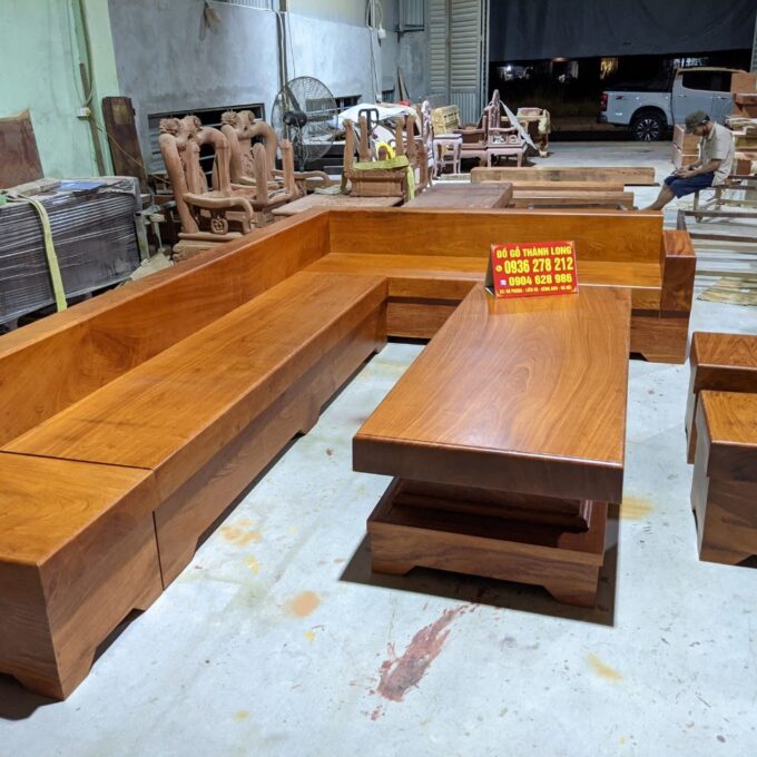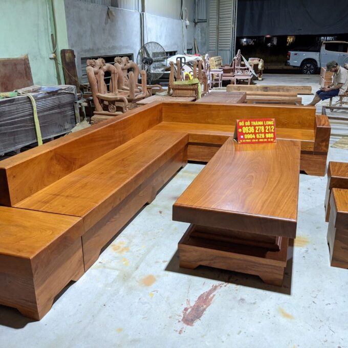 Bộ Sofa Góc L Nguyên Khối Gỗ Hương Đá Giao Ở Kontum