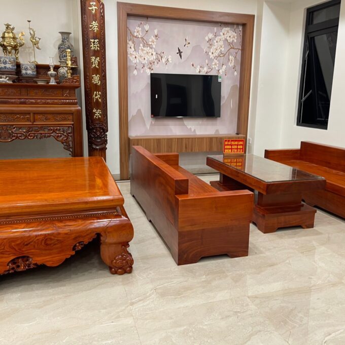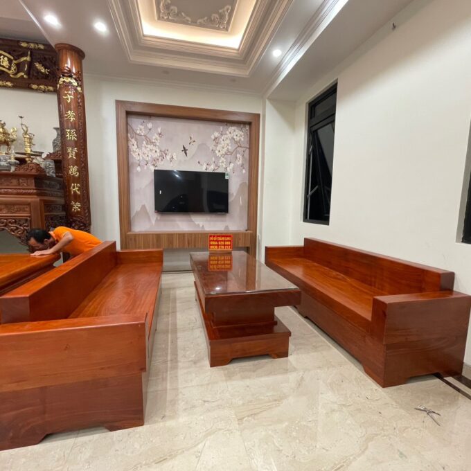 BÀN GIAO BỘ SOFA NGUYÊN KHỐI CHỮ H GỖ HƯƠNG ĐÁ CHO KHÁCH HÀNG TẠI HÀ NỘI