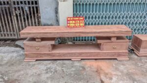 Kệ Tivi Hàng Mộc 2 Tầng 2 Ngăn Kéo Gỗ Hương Đá