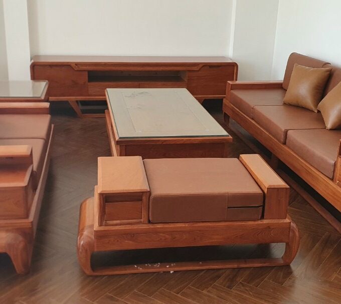 Sản phẩm: hoàn thiện sơn PU đầy đủ có đệm da gối tựa và kính bàn.