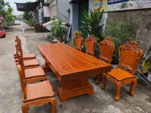 Quy cách: Bàn ăn nguyên khối và 6 ghế chữ thọ